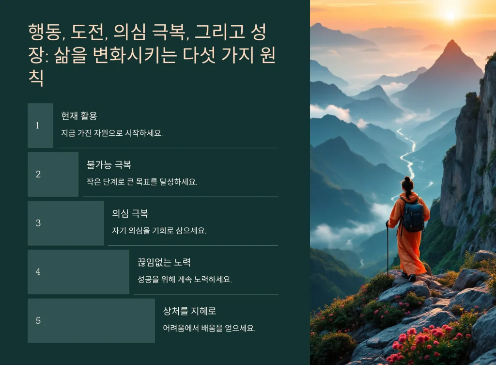 행동, 도전, 의심 극복, 그리고 성장: 삶을 변화시키는 다섯 가지 원칙